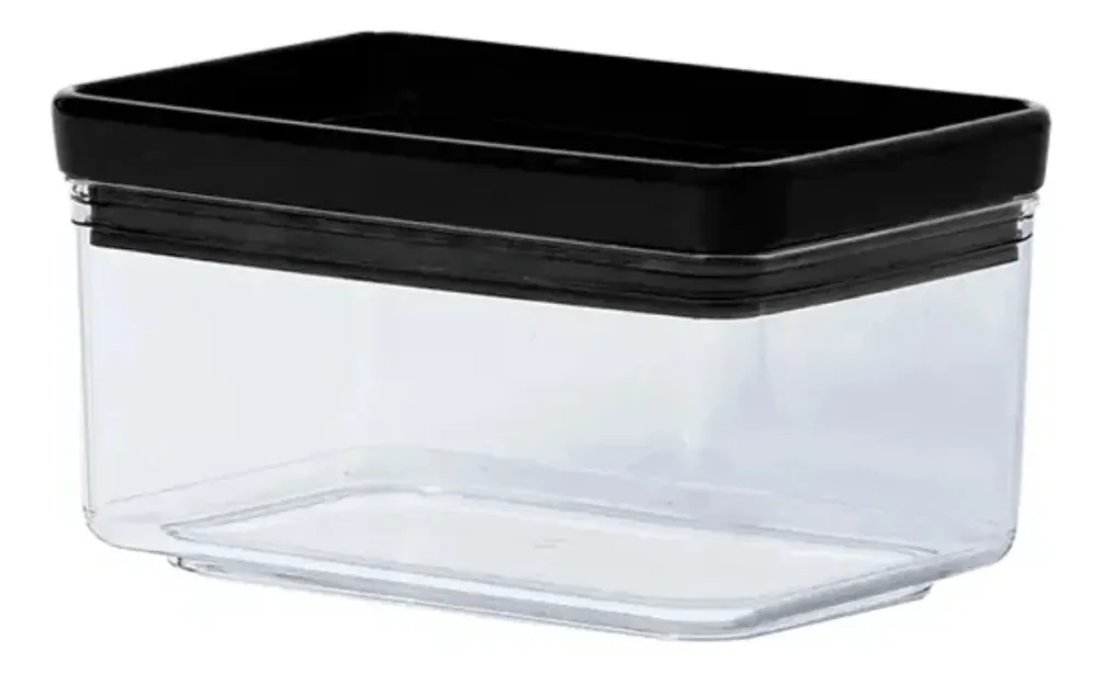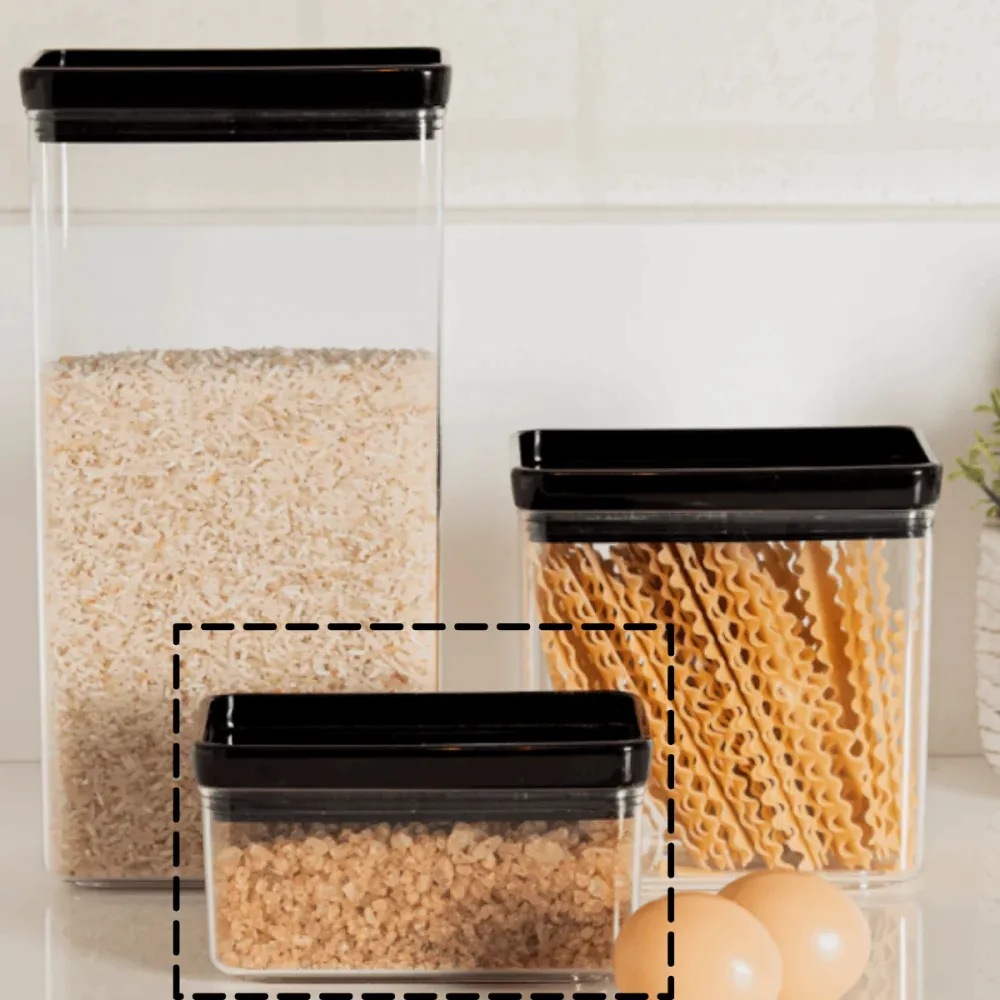 O formato retangular do pote torna-o empilhável e economizador de espaço, ideal para manter sua despensa ou geladeira bem organizada.
